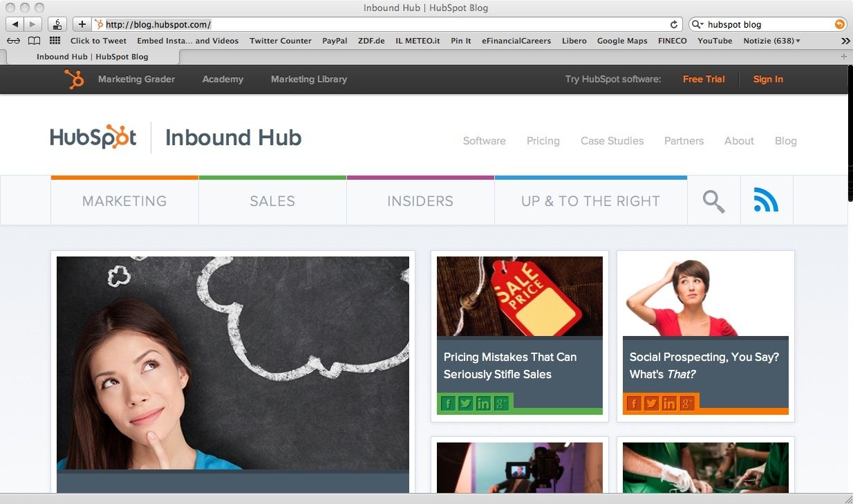 Hubspot fornisce attraverso il proprio Blog Aziendale materiale scaricabile gratuitamente (ad esempio, “free templates” per calendari editoriali).