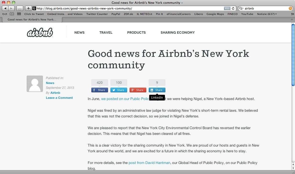 AirBnb utilizza il proprio Blog Aziendale per condividere informazioni con gli utenti e diffondere i propri ‘valori aziendali’.